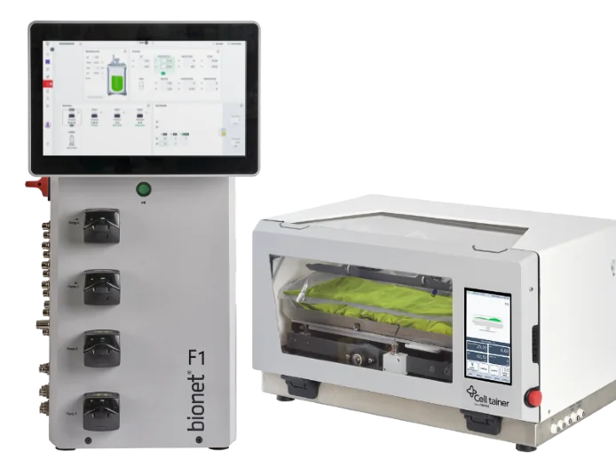 Use F1 bioreactor with Cell Tainer for 2d rocking